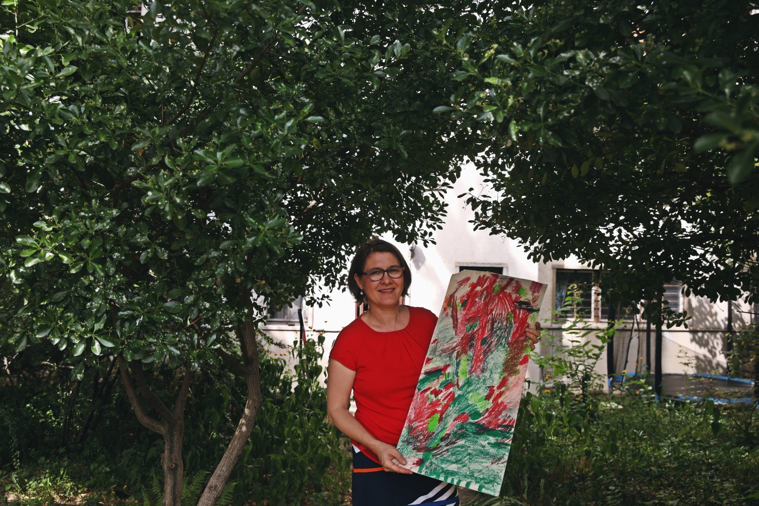 Meg tudják fogalmazni a véleményüket a másik megoldásairól, és rendszeresen kérdezik is egymást. A szorongó gyerekeket éppen ezért nagyon jól »kinyitja« a GYIK-Műhely. Mi nagyban festünk, nagy gesztusokkal, csorog a festék, fröcsköljük a vásznat. Az akcióművészetből is sok mindent átemelünk. Néha becsukott szemmel vagy egymás hátán rajzolunk. A véletlenszerűség, a spontaneitás a jó irány. Ez pedig más területeken is segítheti a gyerekeket, például rájönnek, hogy egy matekpéldát többféleképpen is meg lehet oldani.”