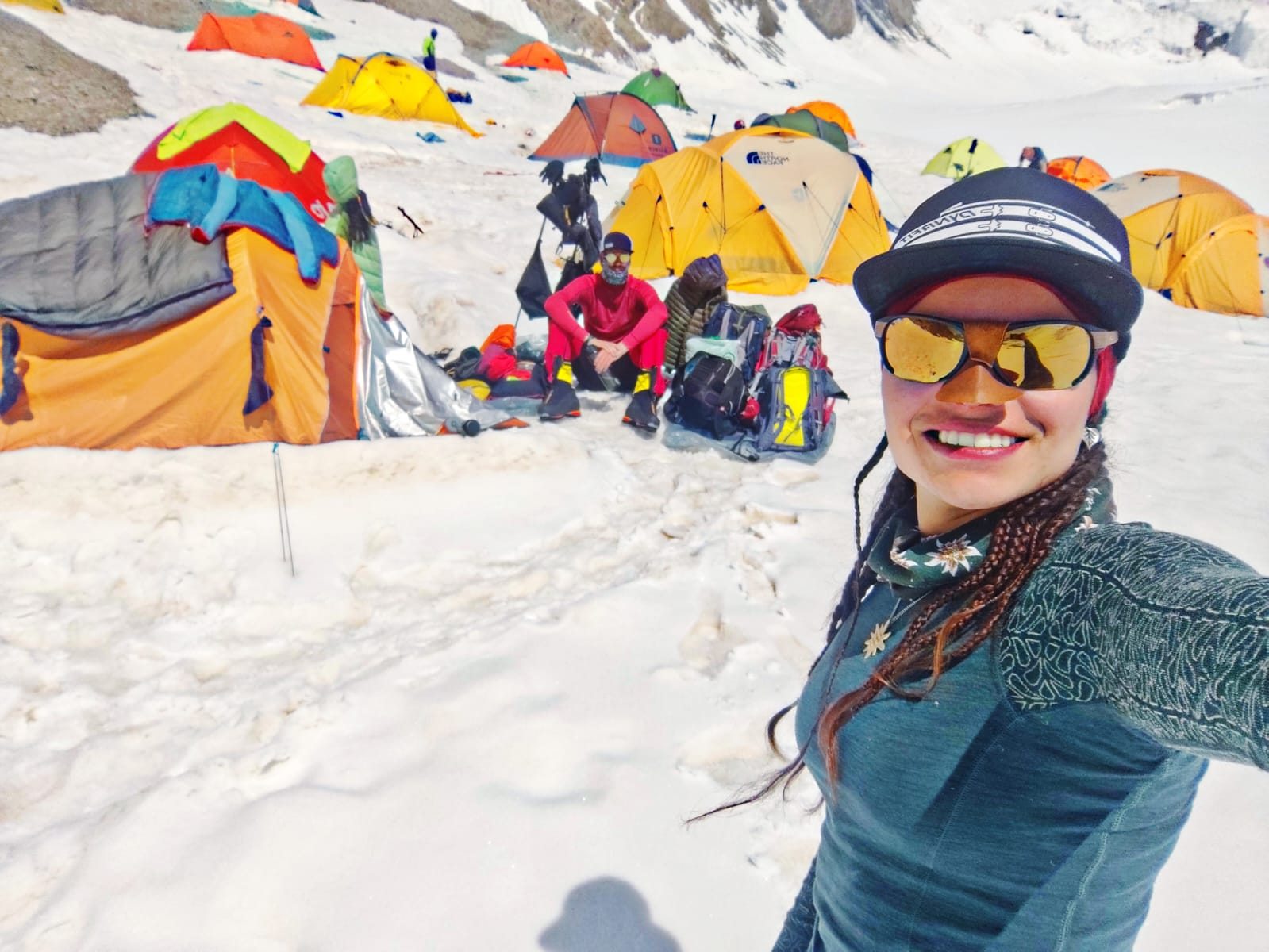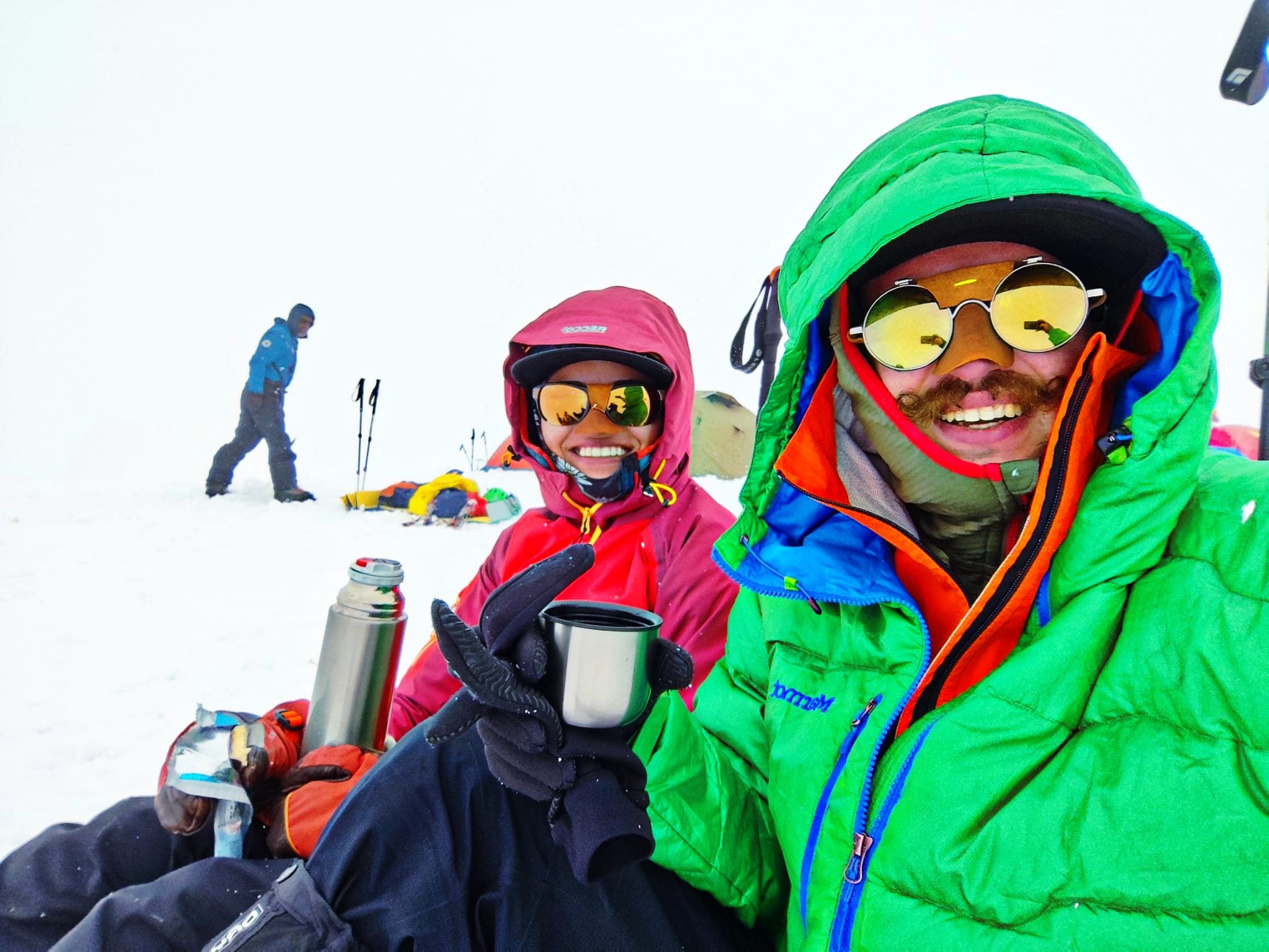 Azonban a hegyen az ember csak tervez, a természet pedig végez. „Egy hirtelen jött, erős havazás kényszerpihenőt követelt, ami alaposan próbára tette a türelmünket. Amikor végre elindulhattunk felfelé, kissé elsiettük a tempót… Eleve fáradtan indultunk neki, így sajnos mindketten meghűltünk. Márpedig ebben a magasságban egy apró megfázás is sok energiát elvesz, különösképpen akkor, amikor az embernek minden maradék erejére szüksége van.”