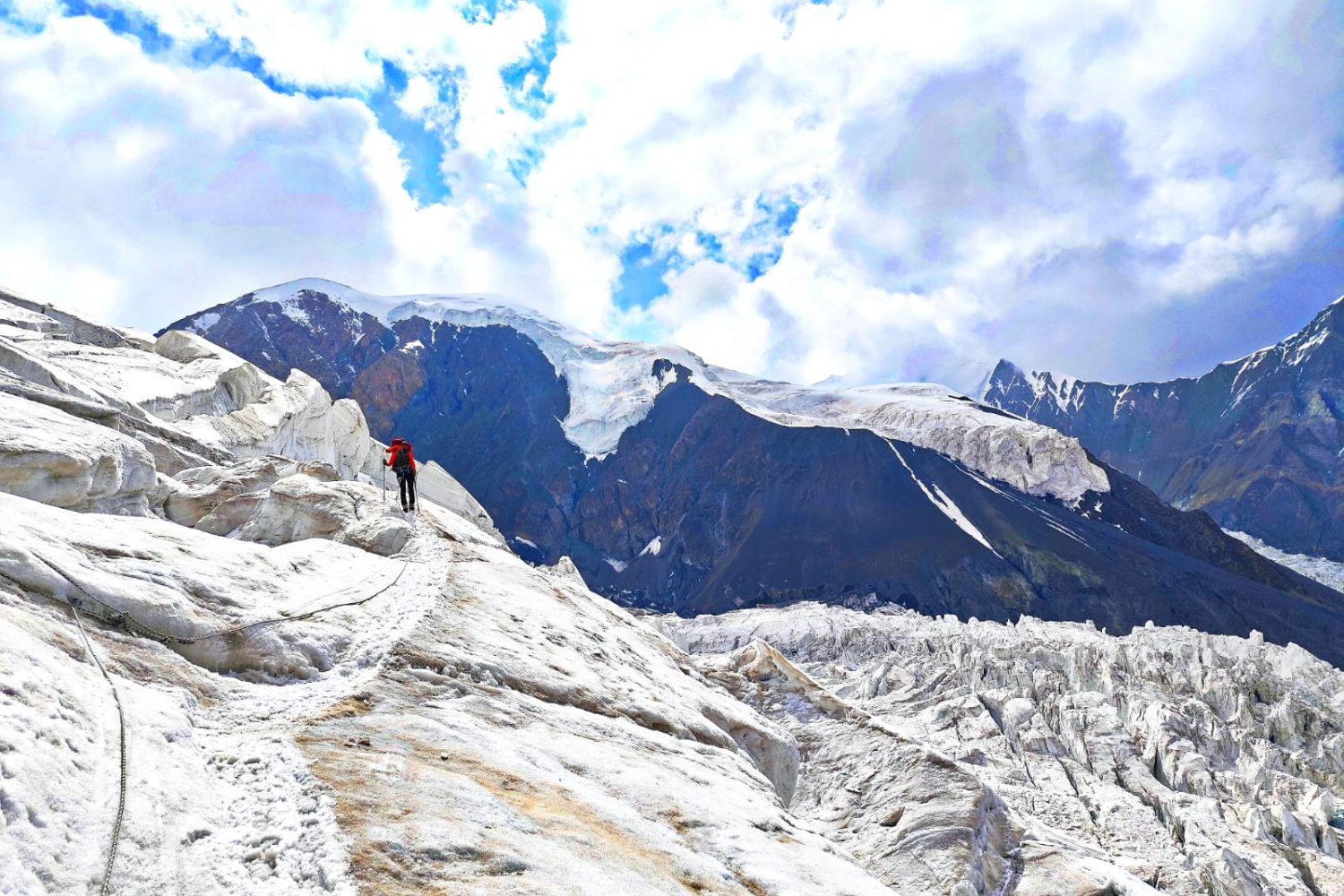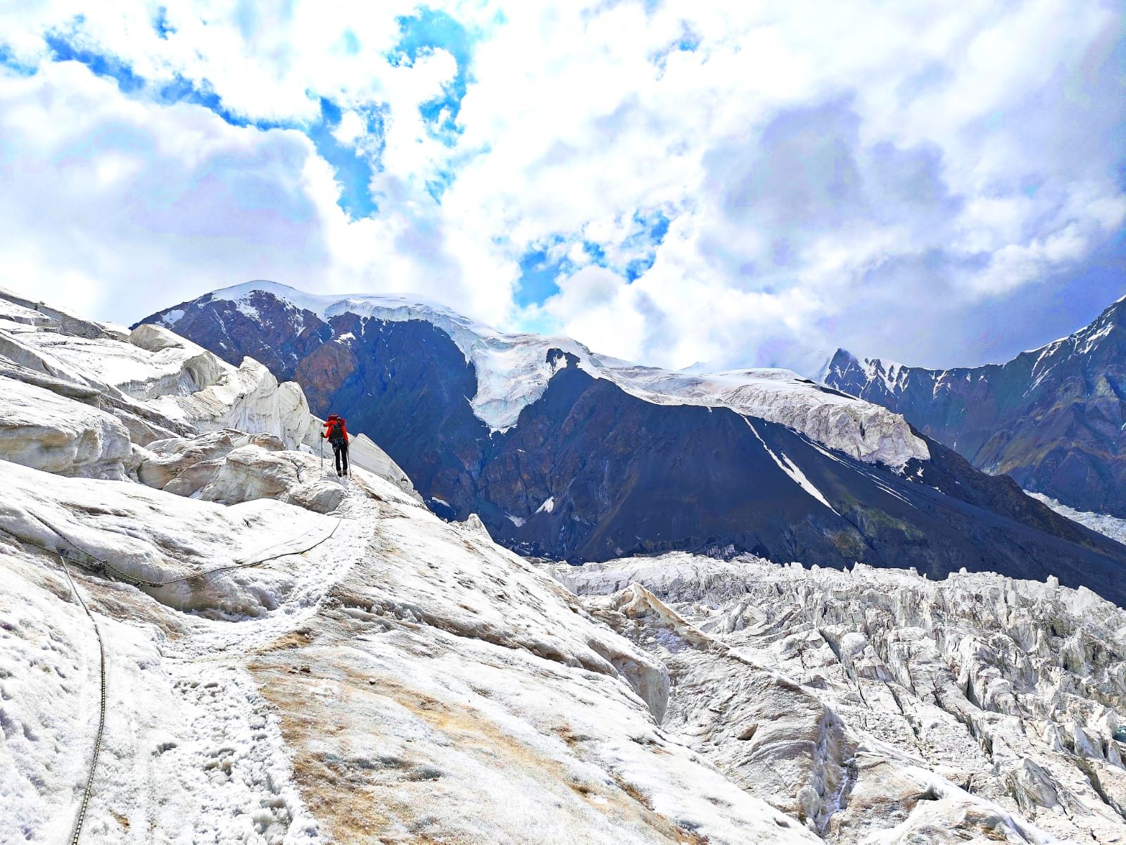Több szakaszt biztonsági okokból éjszaka kellett megtenniük. Nappal ugyanis a felszín annyira felmelegedik, hogy a gleccserrepedések feletti hóhidak megolvadnak, a hó pedig süppedőssé, veszélyessé válik. Éjszakai sötétségben, fejlámpák fényénél vágtak hát neki a fagynak. „Szerencsénk volt, mert egy nagyobb serpacsoport haladt előttünk, akik hihetetlen teherbírással, háromtáskányi csomaggal a hátukon taposták ki az ösvényt, mi pedig a lábuk nyomában haladva küzdöttünk a faggyal és a távolsággal” – meséli Kincső.