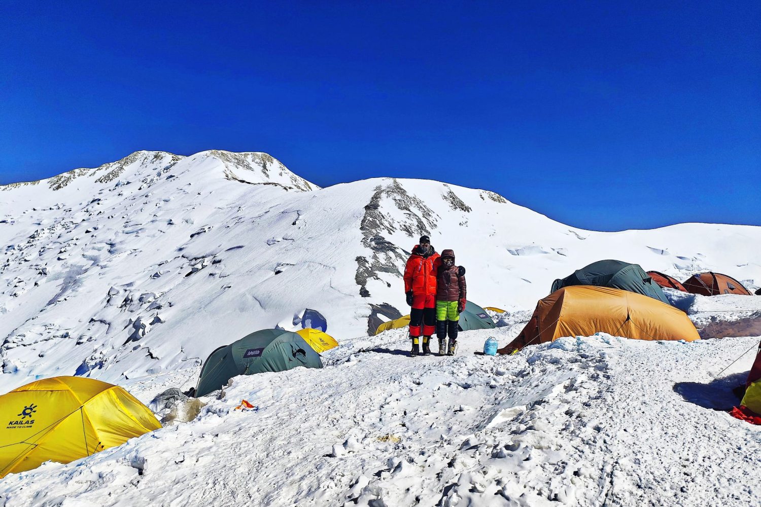 Kincső és Miklós meghódította az 5130 méteres Yukhin-csúcsot, majd némi pihenés után következett az 5400 méter magasságában fekvő kettes tábor. Egy újabb pihenő után jutottak el a 6100 méteren lévő hármas táborig, majd a 6180 méteres Razdelnaja-csúcsig.