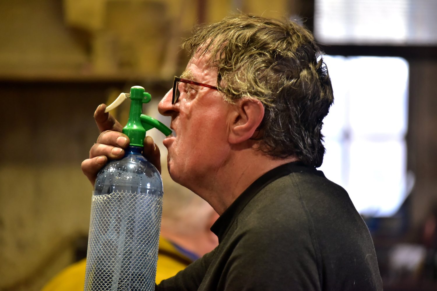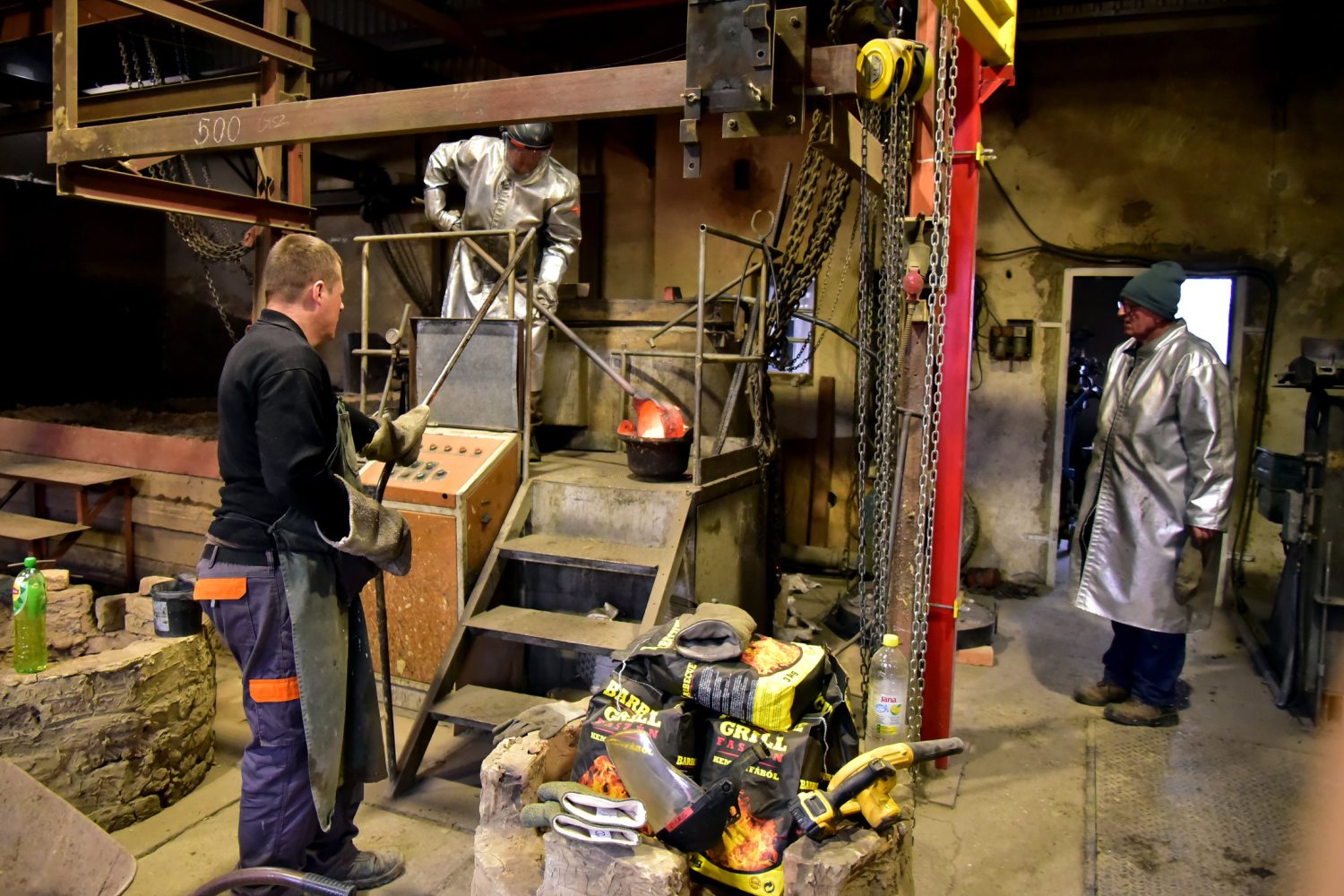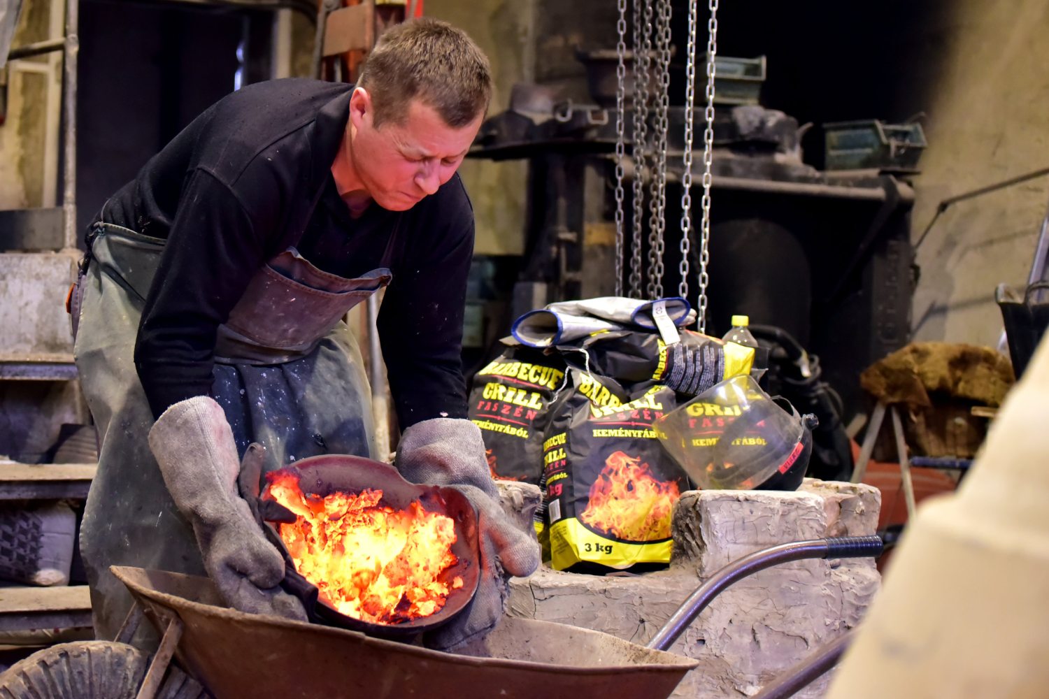 A műveletet egészen addig kell folytatni, míg a szennyeződés, a salak fel nem kerül a felszínre, amit a védőöltözetbe bújt férfi lemer róla. Csöppet sem veszélytelen a művelet: az izzó salakot egy hosszú merőkanállal fémedénybe szedi, amit Czerovszki Zsolt talicskába önt, hogy az udvaron, egy meghatározott biztonságos helyen kiürítse. Legalább tízszer fordul.