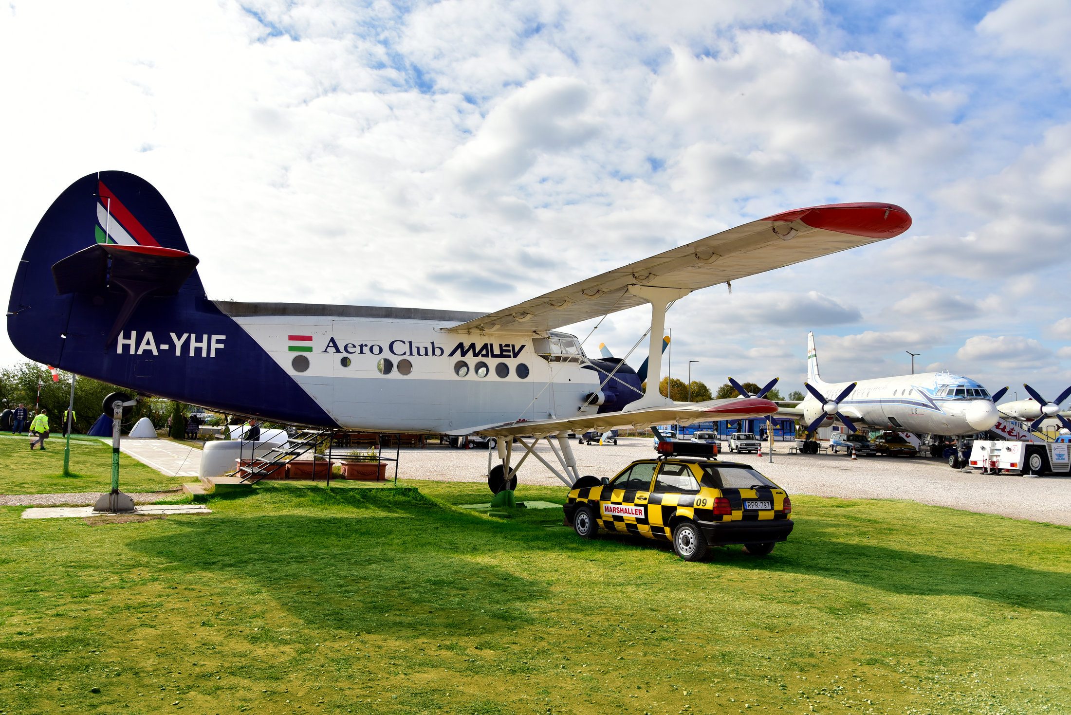 A parkban álló, nyugdíjazott Li-2-es, HA-LIQ lajstromjelű repülőgépet 1952-ben építették. A gépbe a szárnyak mögött, a törzs hátsó részén lehet beszállni. A mai repülőkkel ellentétben törzse nem vízszintes, hanem a faroktól az orrig emelkedik. Ennek az az oka, hogy a két első futómű fix állású, nem lehetett kormányozni, cserébe a gép szinte bármilyen talajon le tudott szállni. Kormányozni a farok alatti kisebb, hátsó futóművet lehetett. Amikor a gép felszállás előtt gyorsulni kezdett, előbb a farokrész emelkedett a magasba.