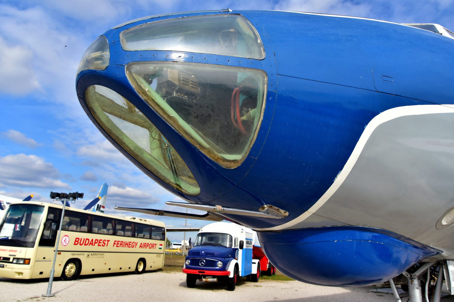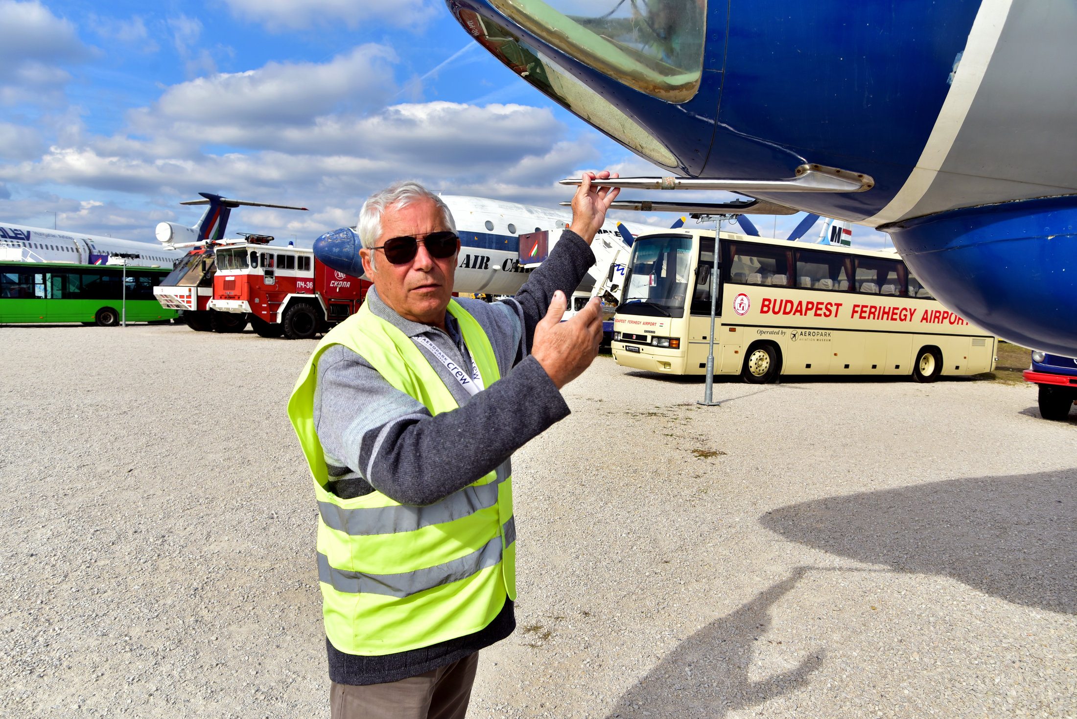 Míg várakozom kísérőmre, legeltetem a szemem a gépmonstrumokon – még ma is fenségesek, méltósággal tűrik az elemek támadását. Mravik Vince korábbi repülőgép-műszerésszel, az Aeropark Repülőmúzeum munkatársával kezdjük meg időutazásunkat, nála nehezen találhattam volna szakavatottabb hozzáértőt. Elhaladunk Antonov-gépek, helikopterek mellett, miközben vendéglátóm elmondja: a légi közlekedést eleinte a budaörsi reptér szolgálta ki, 1950-re fejeződött be a II. világháború előtt megkezdett ferihegyi légi kikötő építése.