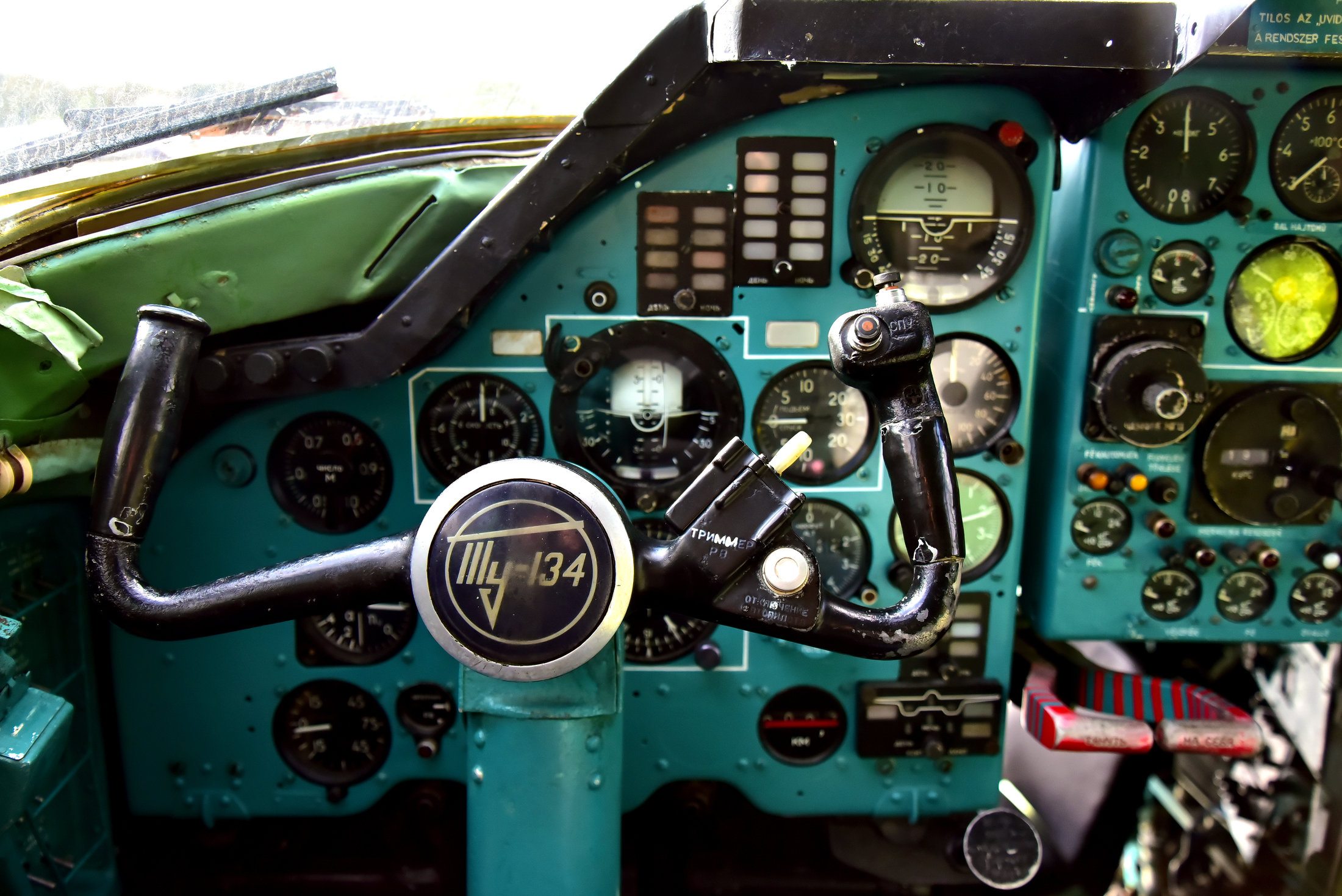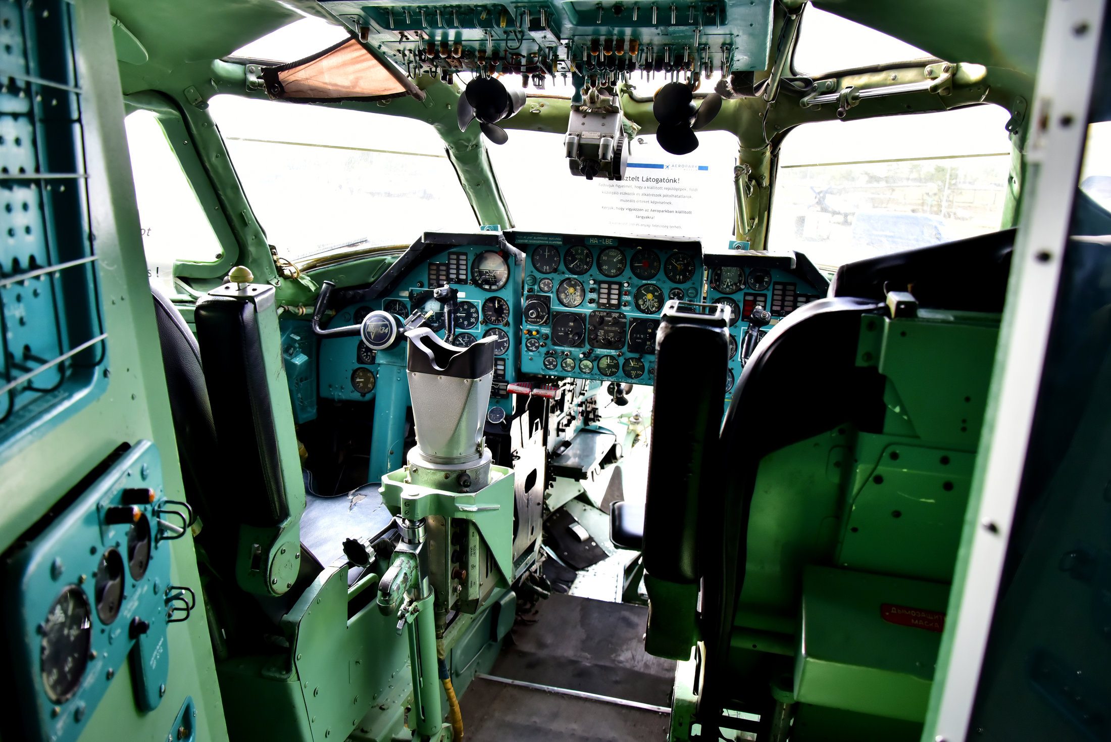 A gép hátsó részén egy kis kiállításon megtekinthető a katasztrófahírekből ismert fekete doboz, ami valójában narancssárga. Ha belegondolunk, logikus: könnyebb megtalálni egy rikító színű eszközt, mint egy sötétet. A Tu-134-esek egészen 1997-ig álltak forgalomban.