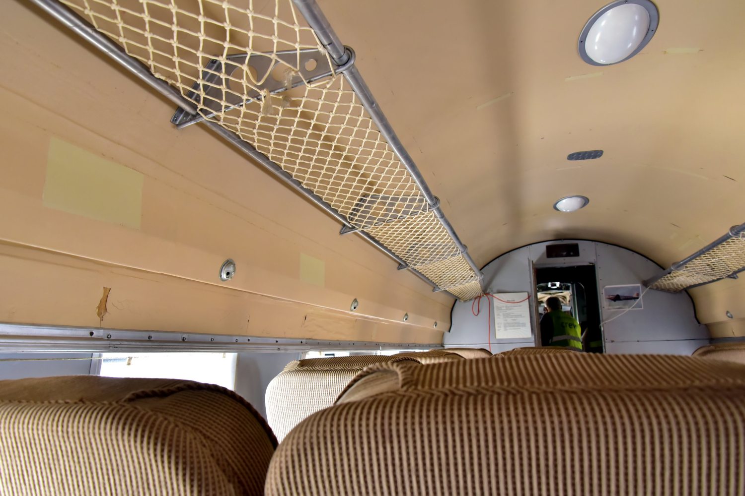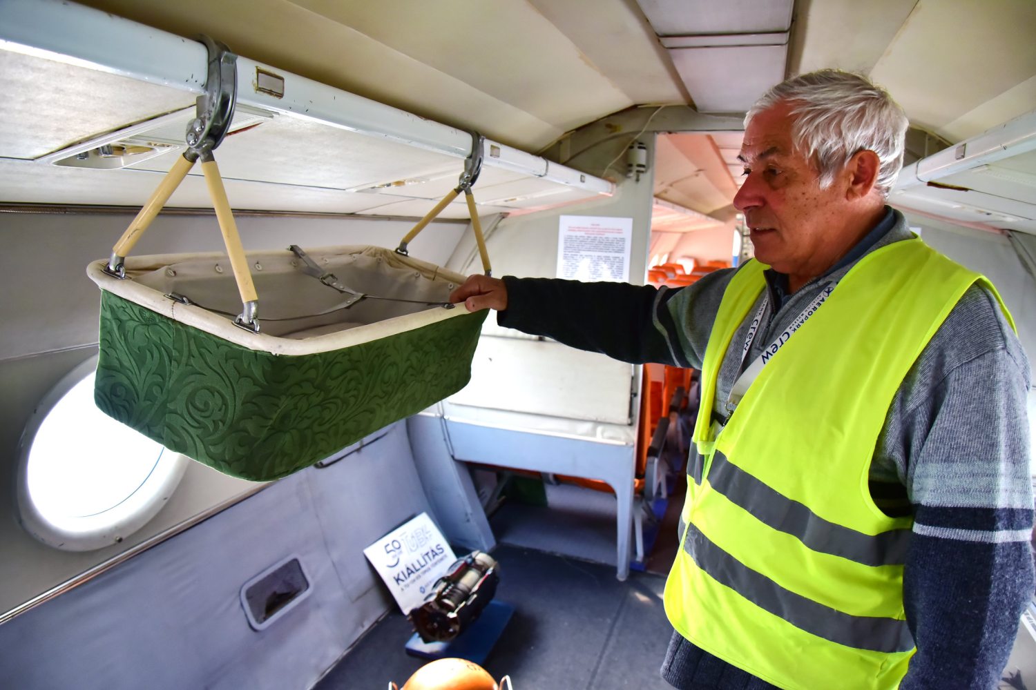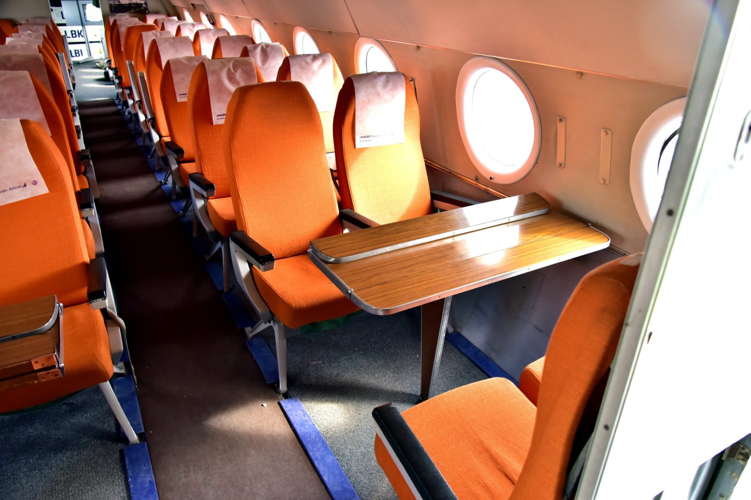 Az utastérben a ma már murisnak ható elrendezésen önkéntelenül is felkacagunk. A kabinba lépve ugyanis az első két sor egymással szemben helyezkedik el, közöttük asztal, mint manapság az intercity vonatokon. Akár ultizhattak is az utasok. Mravik Vince elárulja, repült a menetiránynak háttal ülve, azt mondja, igen furcsa érzés – felszállás közben ugyanis a biztonsági öv tartotta az utast az ülésben.