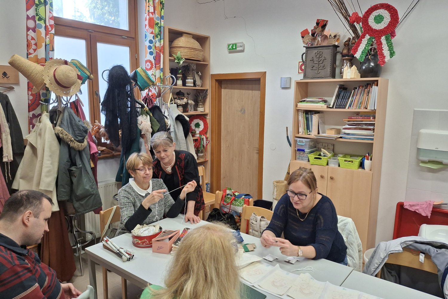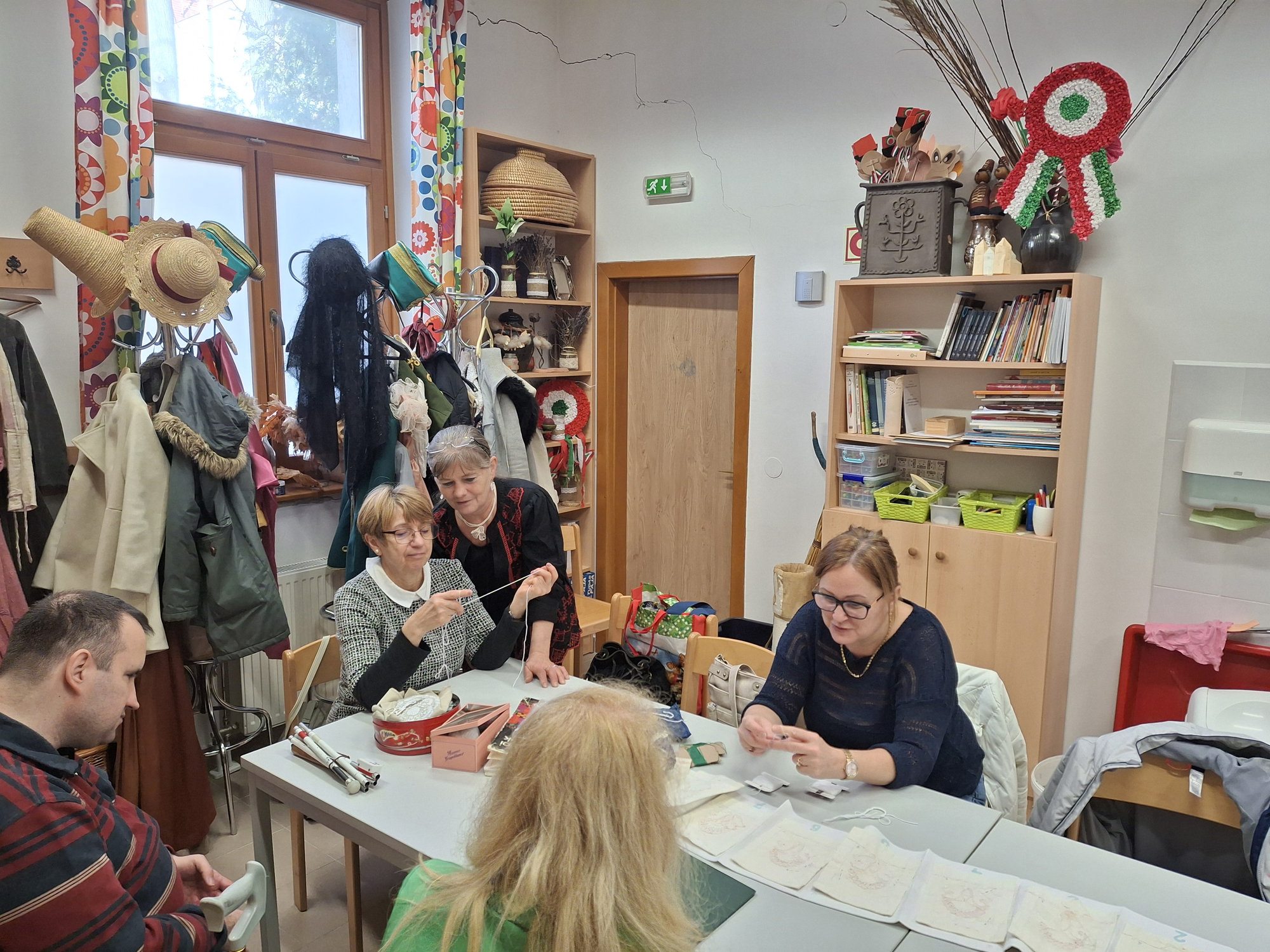 Terike néni nem előadást tart. Körbejár. Segít. Ha valaki szó szerint „lábra varrja” a gombot, türelmesen megmutatja, hogyan kellene. Volt olyan fiatal, aki eleinte a cérnát sem tudta megfelelően befogni a tűbe – ma már magabiztosan dolgozik.