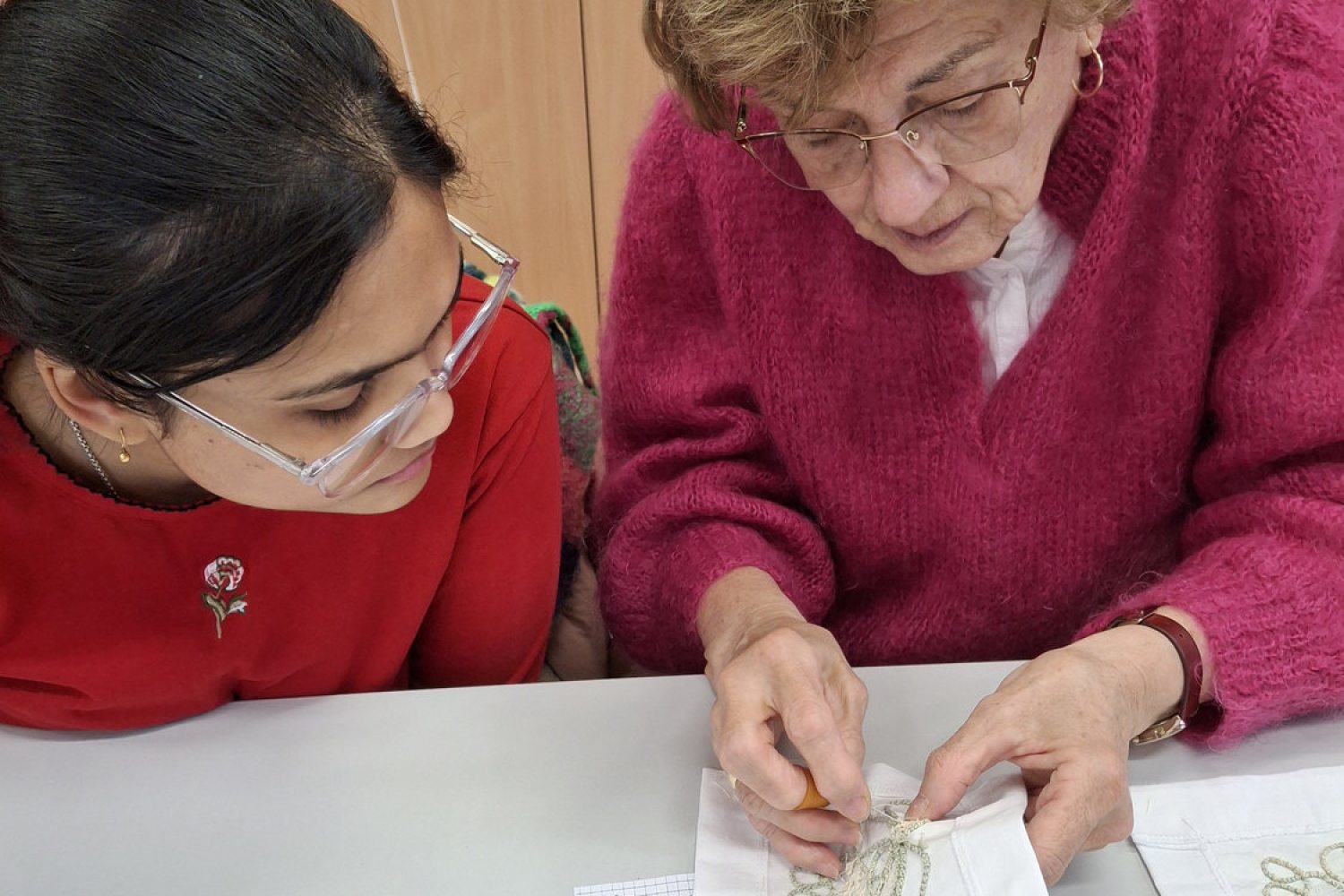 A szakkörben egymás mellett ül múlt és jövő. Andrea néhány hónapja csatlakozott, ő a Facebookon talált rá a szakkörre. „Itt megtanulom, hogy a türelem érték – és hogy a szépséghez idő kell” – mondja. Szavai különösen hangsúlyosak egy rohanó világban, mert emlékeztetnek arra, amit könnyen elfelejtünk.